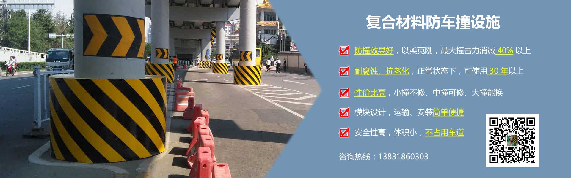 互通立交橋墩防撞設(shè)施,又稱為互通立交附著式柔性防車撞裝置,是一種附著到立交橋橋墩四周的柔性復(fù)合材料橋梁防撞設(shè)施。這種防撞設(shè)施為復(fù)合材料單元模塊組裝式或整體導(dǎo)流塊式,根據(jù)車輛通行情況(車輛等級、限速等級)...