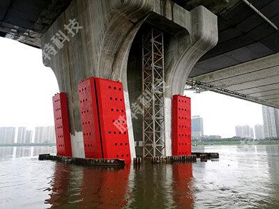 自浮式復(fù)合材料橋梁防撞設(shè)施,是安裝在橋梁橋墩四周,隨著江面(河道、海面)水位的高低依靠自身的浮力沿著橋墩軸線上下升降,始終處于船舶撞擊高度的防撞設(shè)施。根據(jù)設(shè)防橋梁或承臺規(guī)格,當(dāng)最高水位與最低水位相差較多...